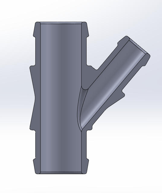 Traditional molded parts are limited by tool access, which often results in sharp internal corners. With 3D printing, we were able to incorporate filleted transitions inside the fitting. This improvement allows: